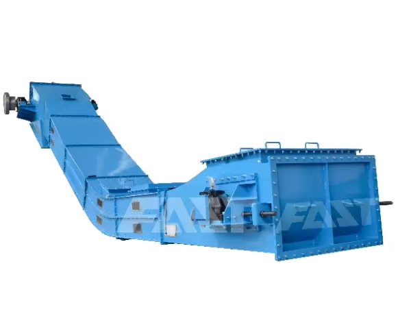 The transition section is added under the head pulley, and the discharge regulating plate and buffer chamber are provided to reduce the backflow of materials and increase the capacity; A replaceable wear plate is installed on the head;